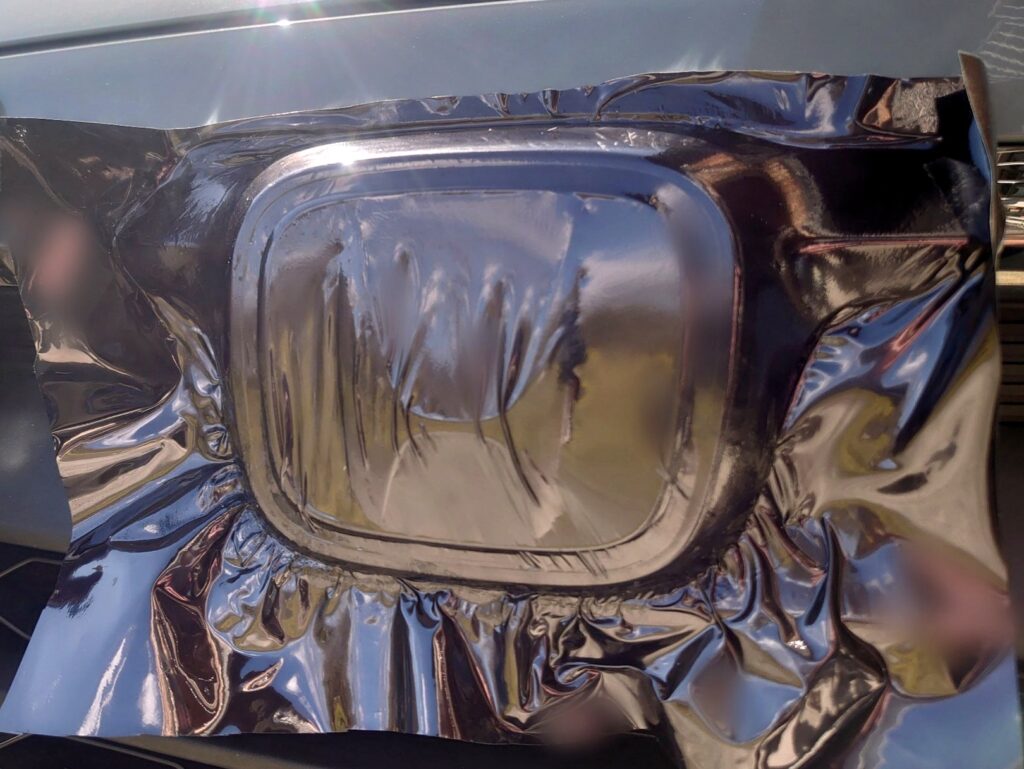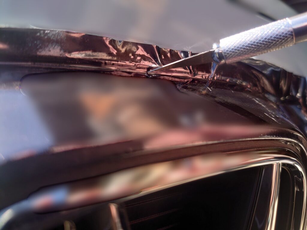曲面は、ヒートガンでシートを温めて伸ばしながら圧着していきました。ポイントとして、シートを痛めないために15cmくらいの距離を保ちつつ、ヒートガンを常に動かしながら一点を加熱し過ぎないよう広範囲を加熱して作業しました。