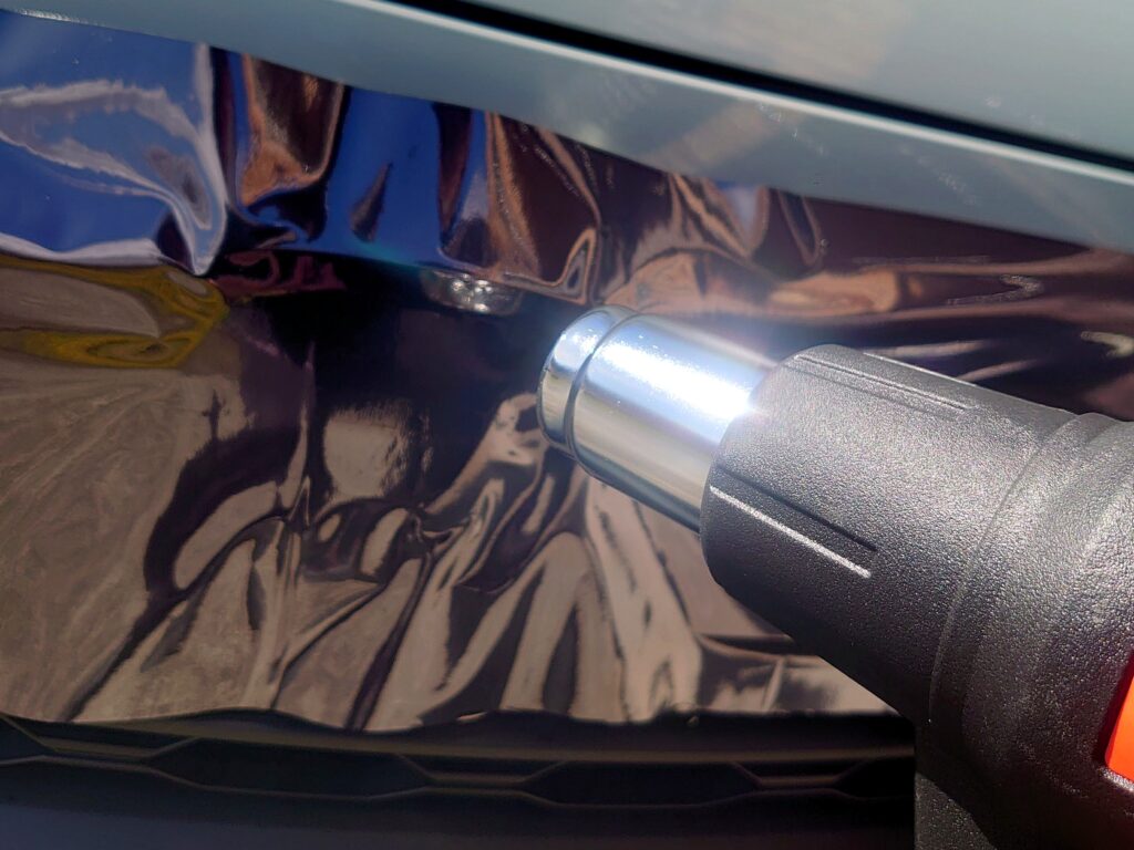 ヒートガンは、カーラッピングシートを加熱して軟化させるために使用します。軟化させて伸ばしやすくすることで曲面に貼りやすくなったり、加熱することでシートを施工面に密着させたりすることができます。