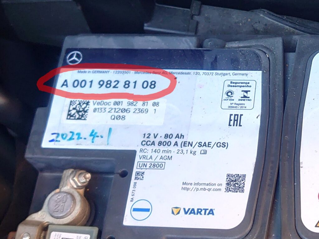 メルセデス純正バッテリーの場合は部品番号が表記してありますので、純正バッテリーに交換する場合は同じ部品番号のバッテリーを購入すれば適合します。