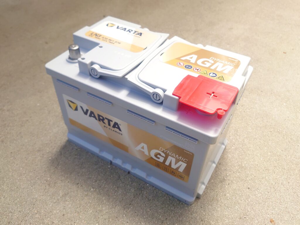- AGM:吸収ガラスマット式(密閉型)バッテリー。高性能でアイドリングストップ対応。