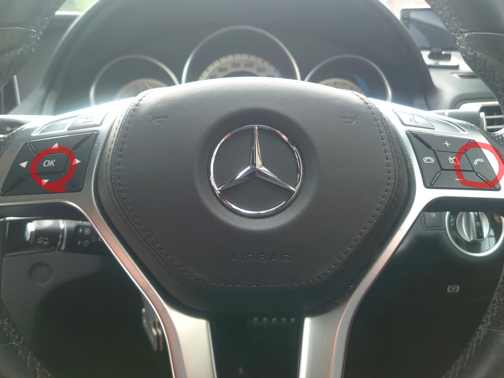 3.ステアリング右側の電話オンフックボタンを先に押した状態で、ステアリング左側のOKボタンを押して二つ同時押しのまま暫く待ちます。