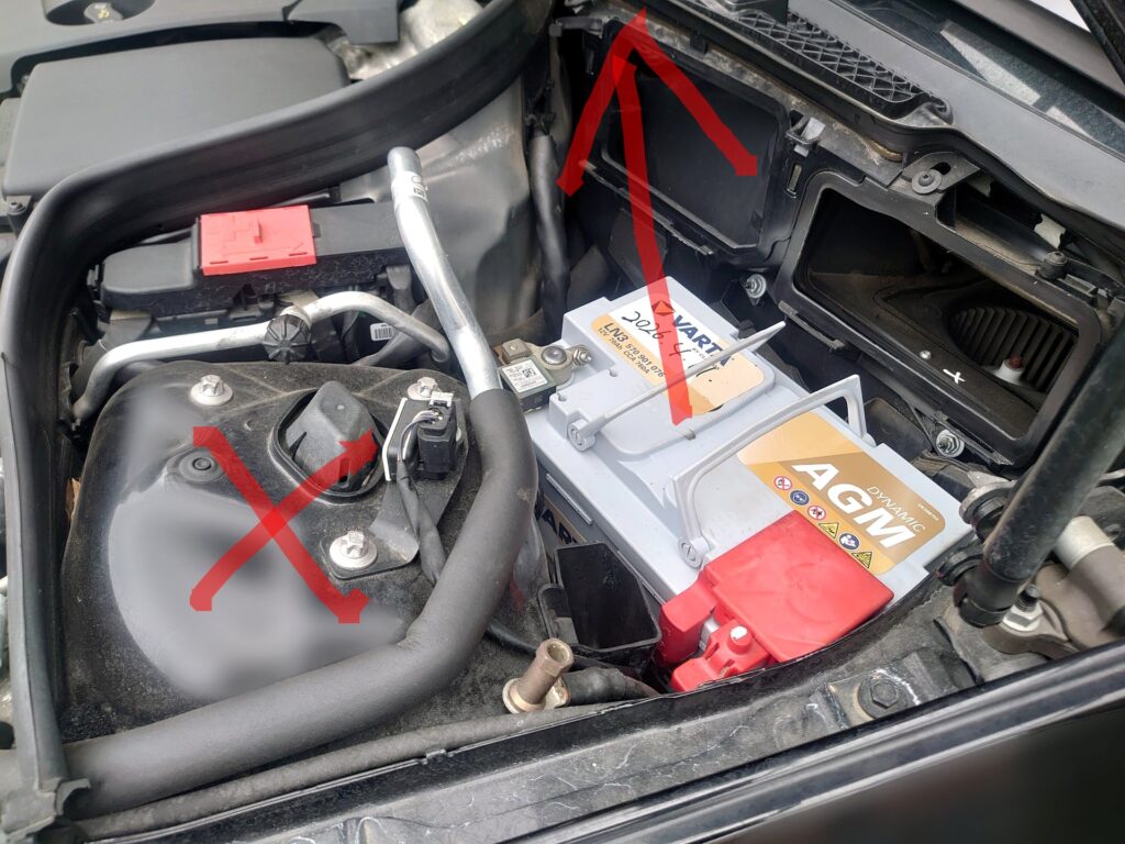 基本的な交換手順は国産車と大きく変わりませんが、欧州車ならではの点として、バッテリー重量が20~23kgと重くて積み降ろしが大変なこと、設置スペースが狭くて固定用ブラケットの付け外しがやりにくいことがありました。その大変さは、ディーラーに頼めばよかったと思ってしまう程でした。