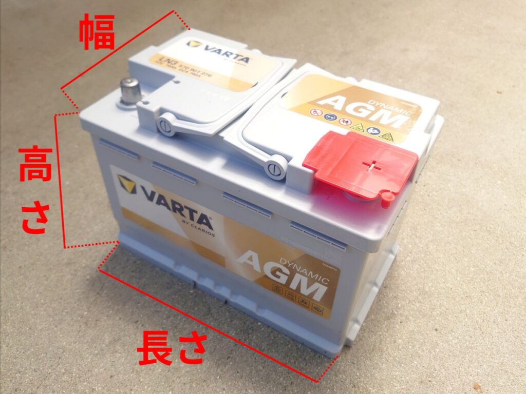社外バッテリーの場合は、バッテリー上面等にサイズが記載してある場合があるので確認することができます。