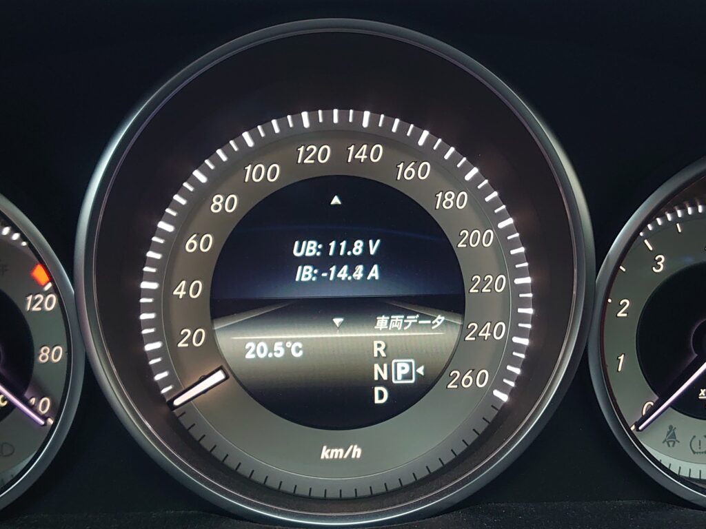 メルセデス・ベンツの場合、バッテリーチェッカーを使用しなくても車両側で確認することができます。