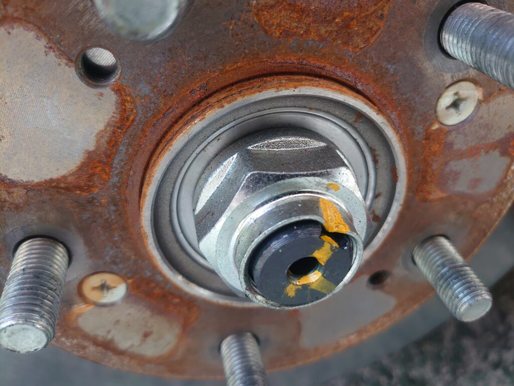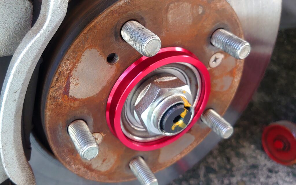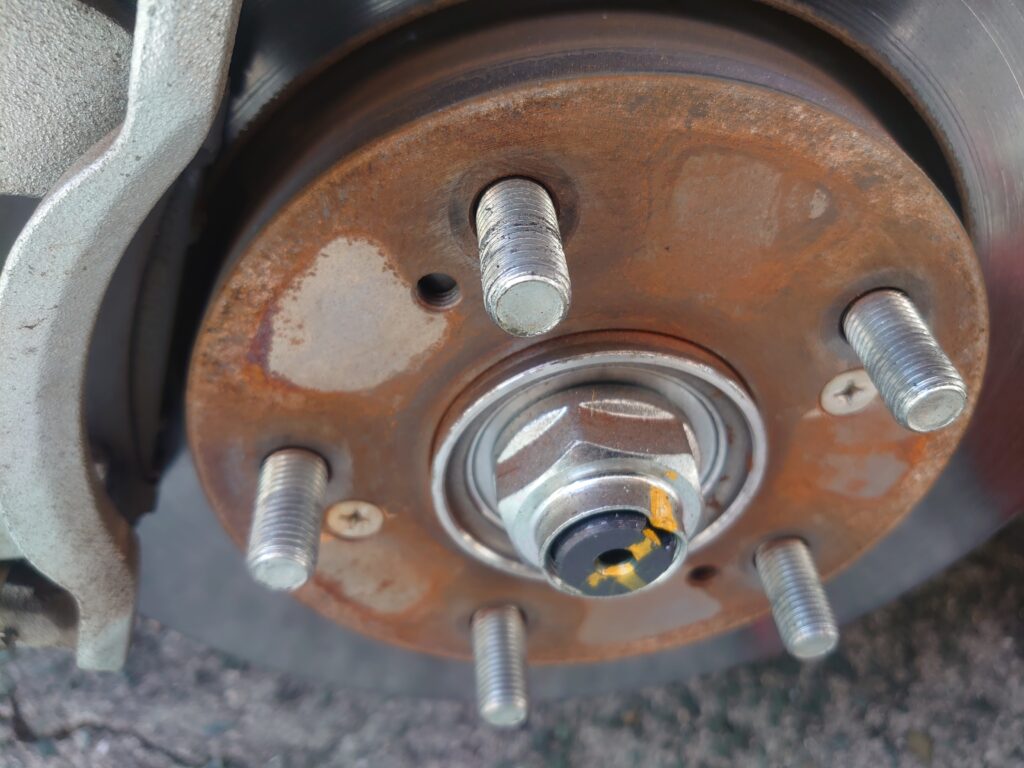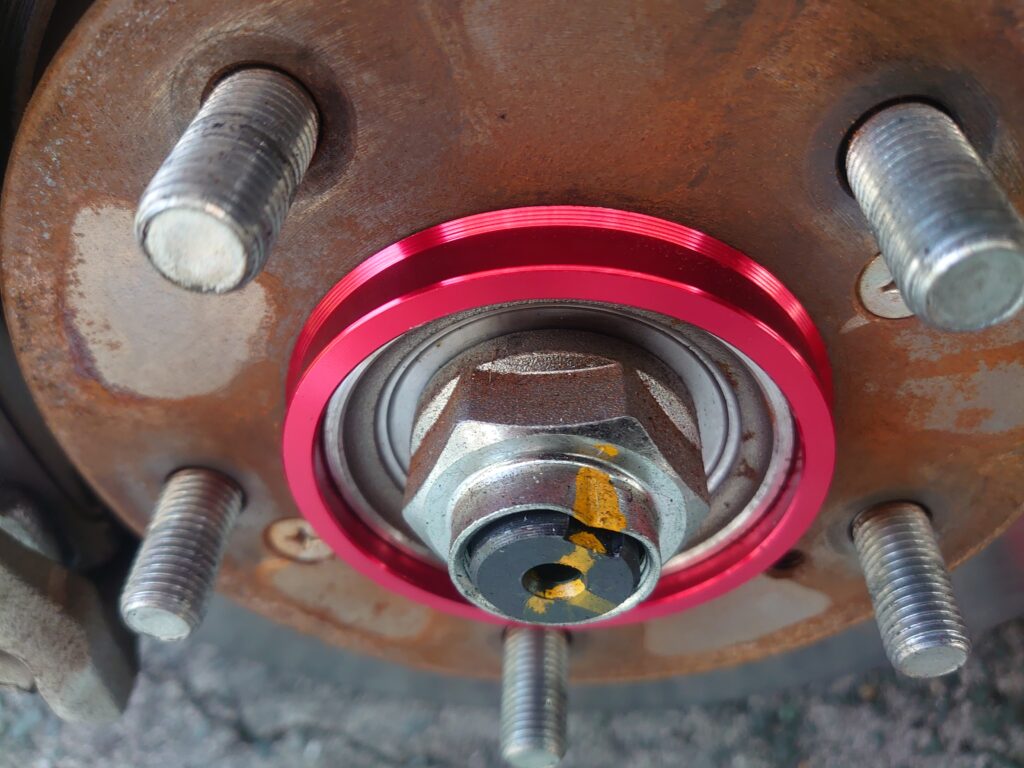本来であれば、社外ホイールと一緒にハブリングを装着しますが、去年までは買い忘れてハブリング無しの状態でした。