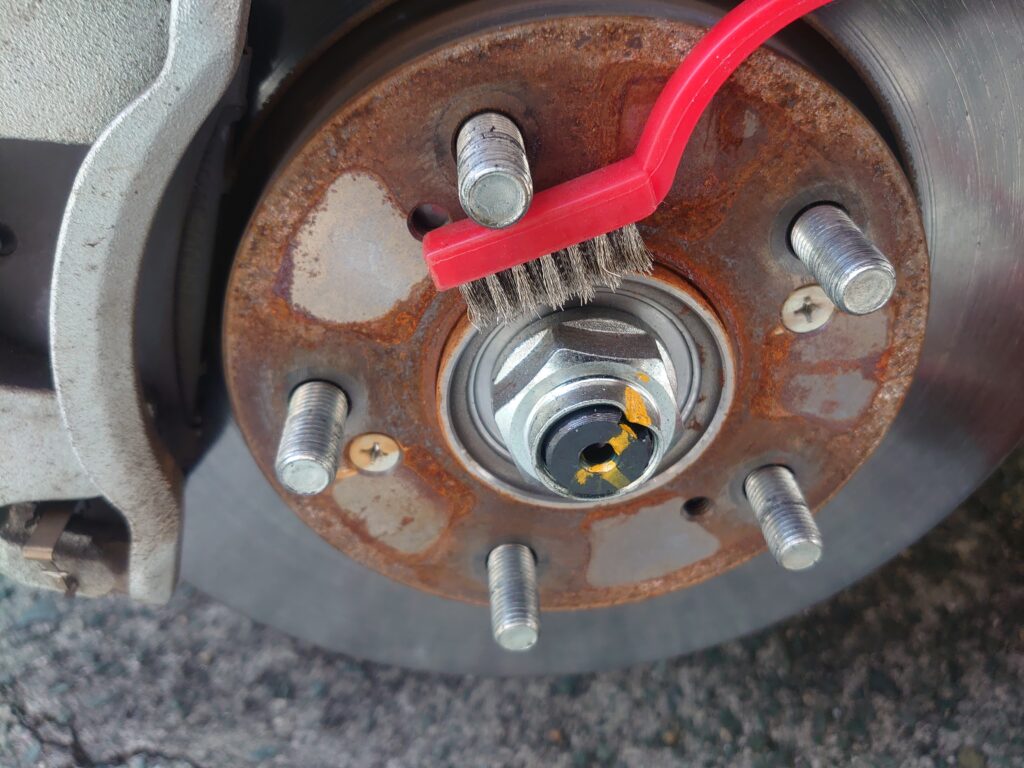 錆は、ハブリングを装着した時に固着の原因となり、外すのが大変になるのでステンレスブラシで錆を落としておきます。