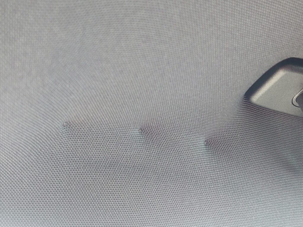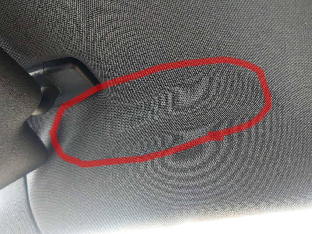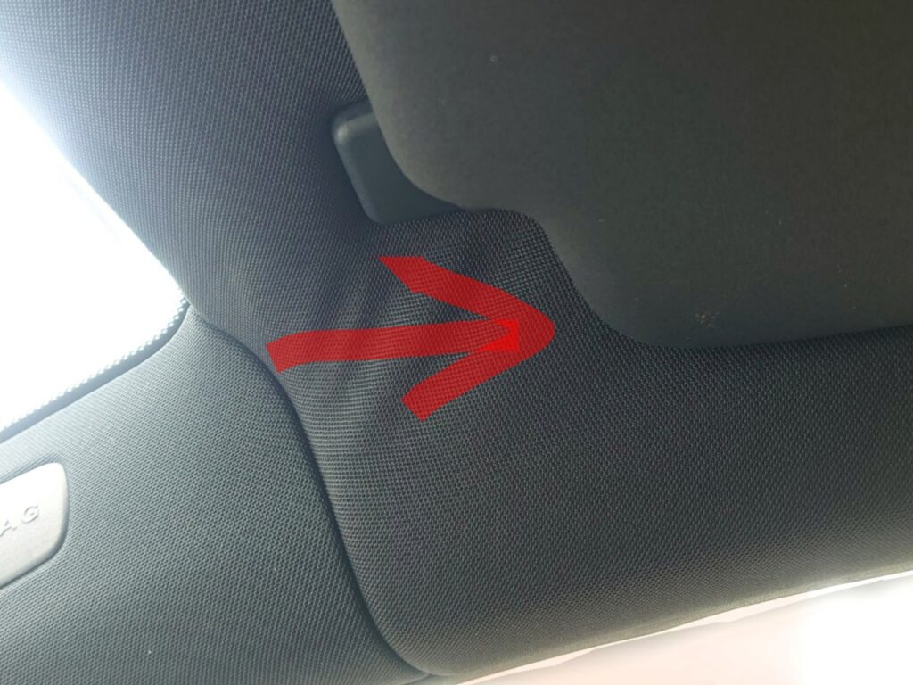 運転席側のAピラー近くの天井のアールの部分が浮いてシワになっています。