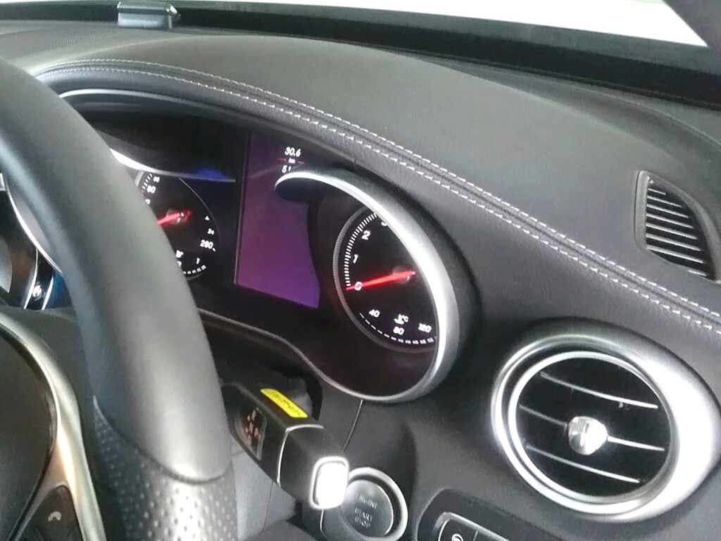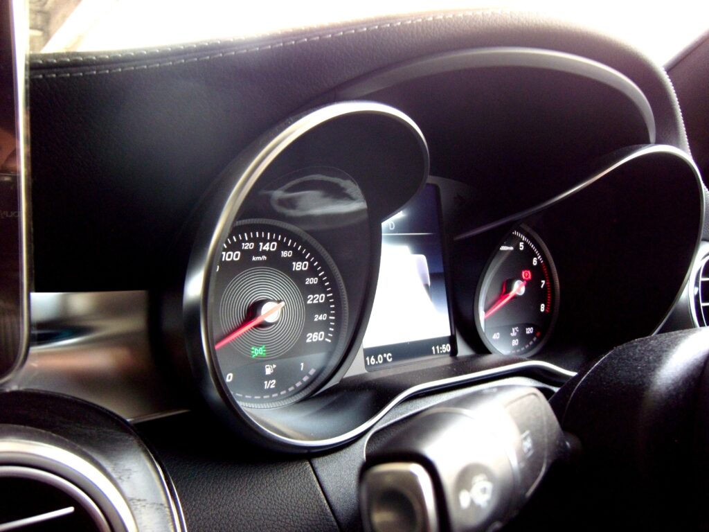 代車の2017年モデル(前期型)は、AMGラインが装備されているのでダッシュボードがレザー(合皮)張りです。ひと昔前ならダッシュボードがレザー張りなのは、Eクラス以上の上級モデルだったと思いますが、W205では上級モデルにも負けず劣らない上質なインテリアが味わえます。