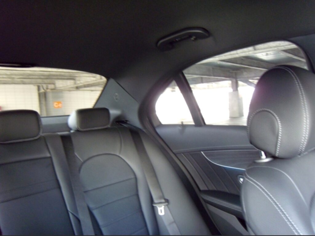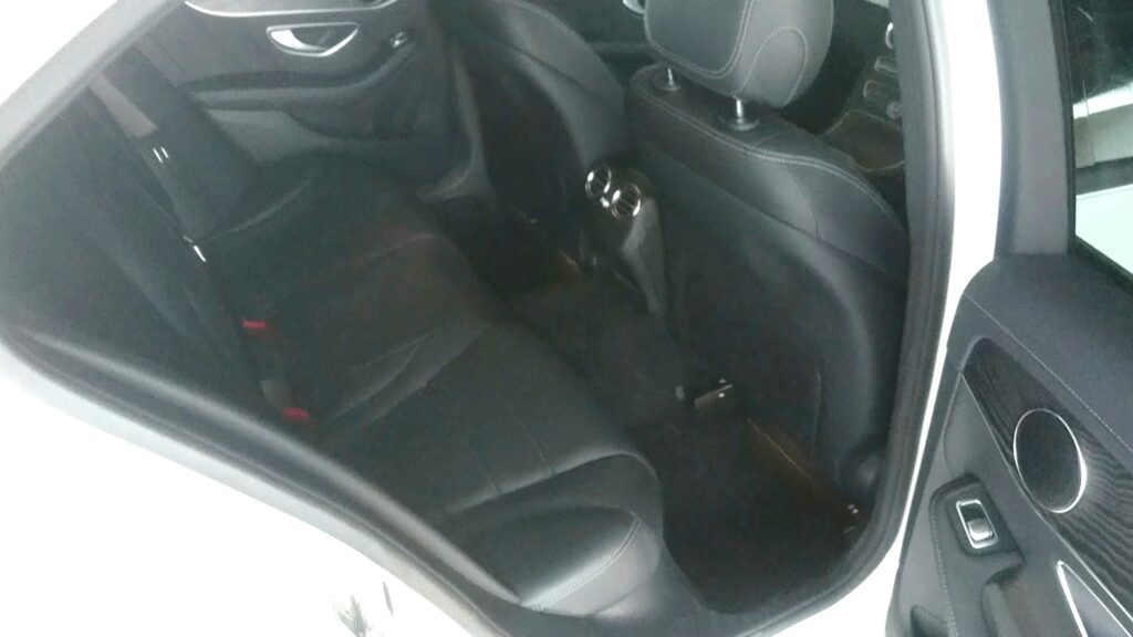 後部座席のドアを開けて中を見ると、こんな感じです。座ってみると、膝前の空間もあり大人が座っても比較的ゆったり座れます。しかし、広さを求めるならEクラス以上かなと思いました。
