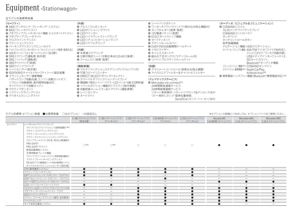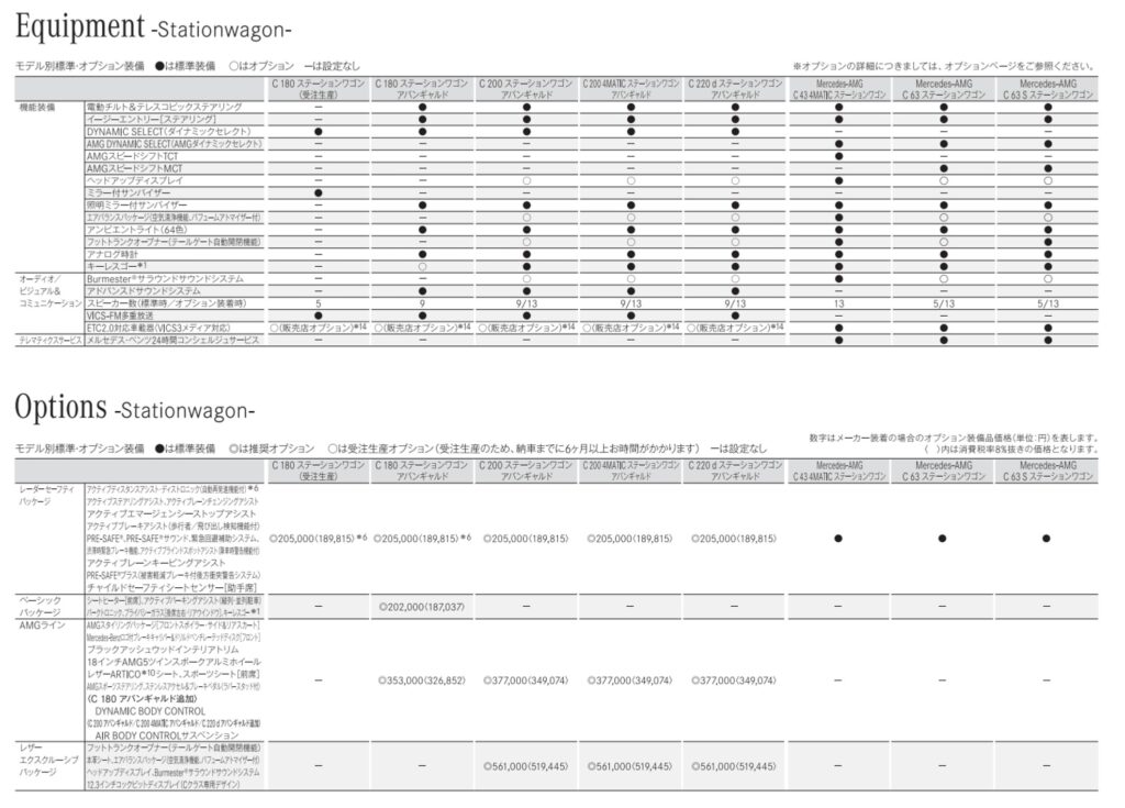 やはり装備には拘りたいという場合には、C200かC220dのAMGライン・レザーエクスクルーシブパッケージ装着車がオススメです。ステーションワゴンも後期型からはスポーツグレードが無くなり、セダンと同様のグレード展開となりました。
