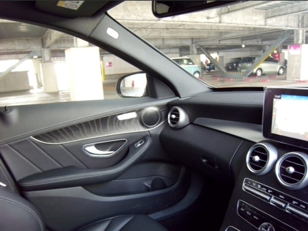 ドアパネルに目をやると、マットなウッドパネルやアルミパーツの組み合わせが目を引きます。これがまたお洒落ですね。オーディオは、ノーマルの5スピーカーのオーディオが付いていました。ブルメスターサウンドシステムは、2017年モデルではC250やC350e、AMGモデル等の上級グレードのみの装備となっています。