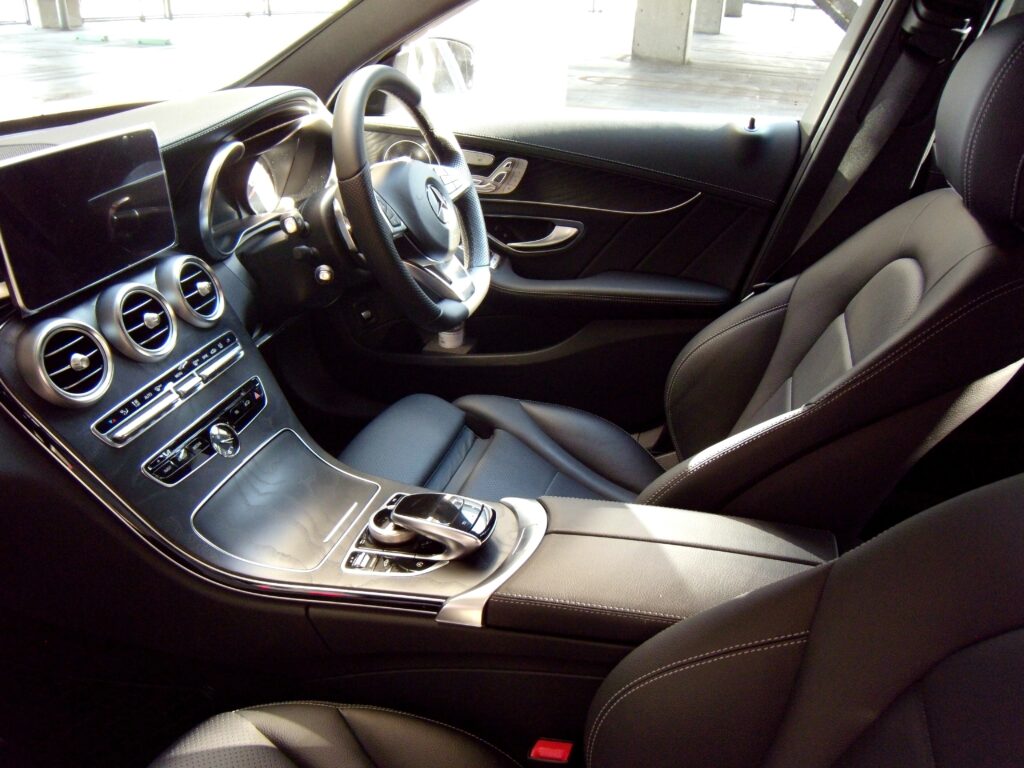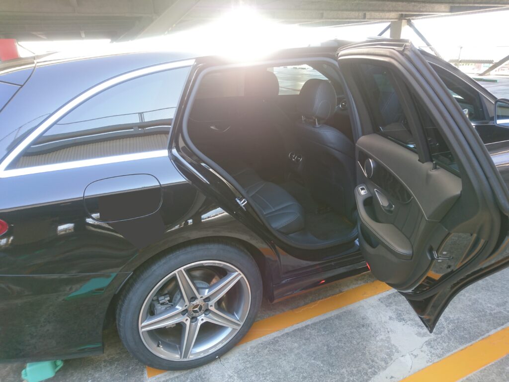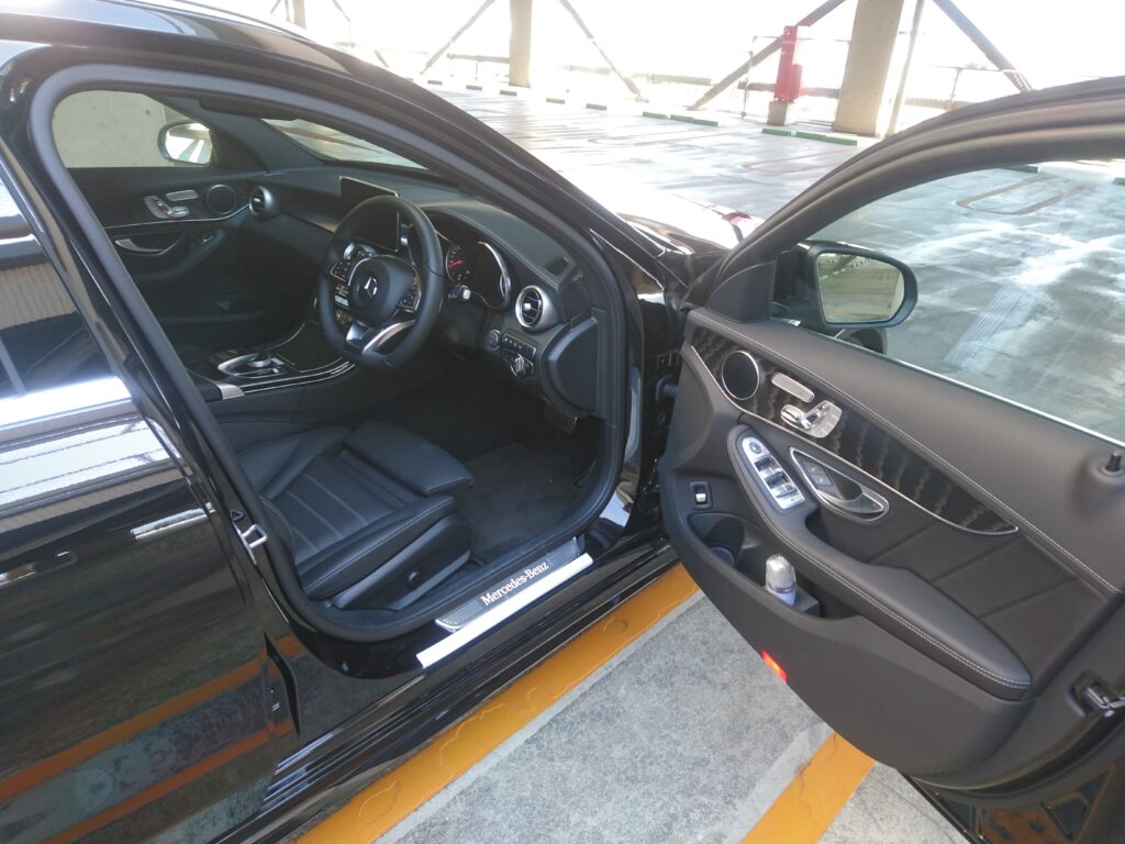 ディーラーから代車で借りたC200ステーションワゴン・スポーツ本革仕様)(前期)です。ステーションワゴンの場合は、年式によって違いはありますが、2017年モデルではセダンとはグレード構成やセットオプションの内容が異なります。スポーツと付くグレードは、AMGラインが標準装備となっています。